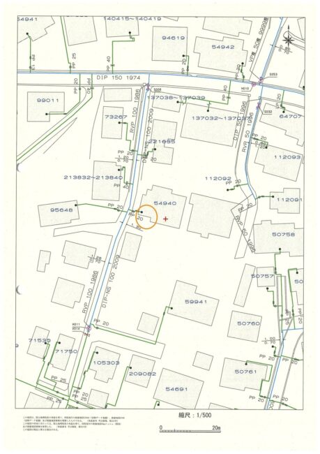上水道図:20mmが引込済です。